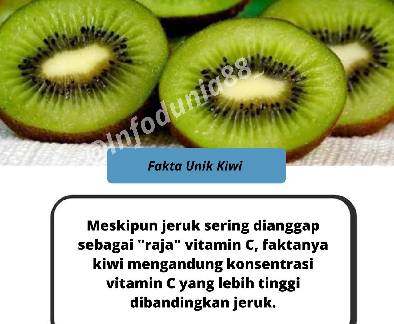 “Jika dilihat per 100 gram, kiwi mengandung sekitar 90 hingga 100 miligram vitamin C, sedangkan jeruk berkisar 50 sampai 60 miligram. Jadi secara kepadatan nutrisi, kiwi lebih unggul,” ujarnya.